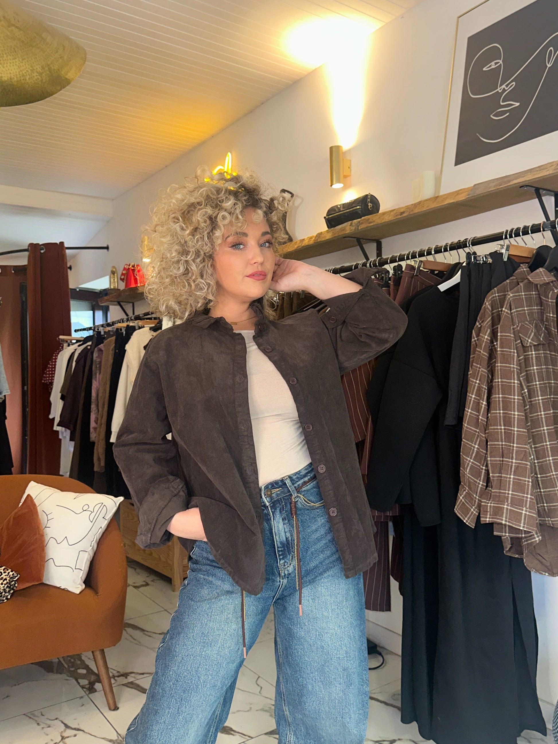 La chemise Lara est conçue avec un tissu en velours choco tendance et un col volant pour un look élégant et moderne. Son tissu doux offre un confort optimal pour un style impeccable en toute occasion. Soyez à la pointe de la mode avec cette chemise chic et tendance.