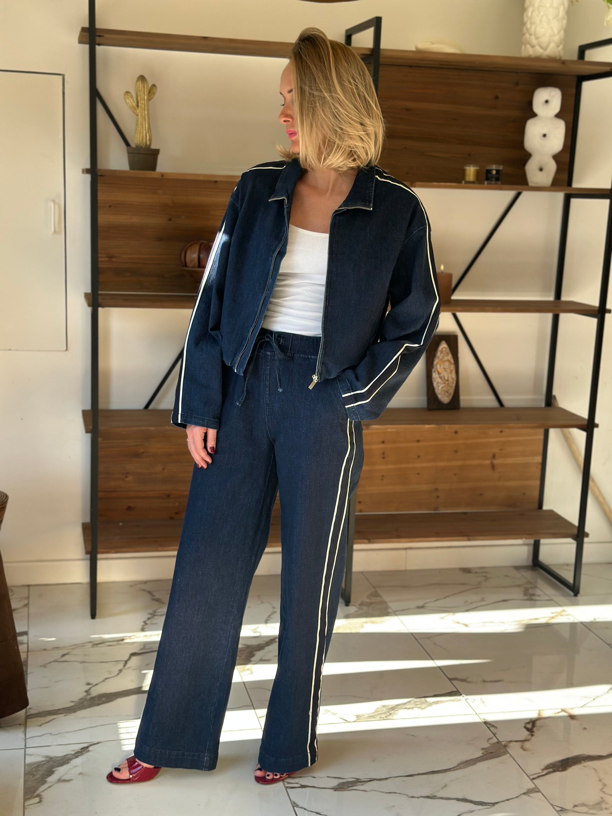 L'ensemble Livia est conçu en jean, offrant une allure à la fois décontractée et tendance. Son design sportswear permet une grande liberté de mouvement, adapté à diverses occasions. Sa combinaison de style et de confort répond aux besoins d'une mode moderne et fonctionnelle.