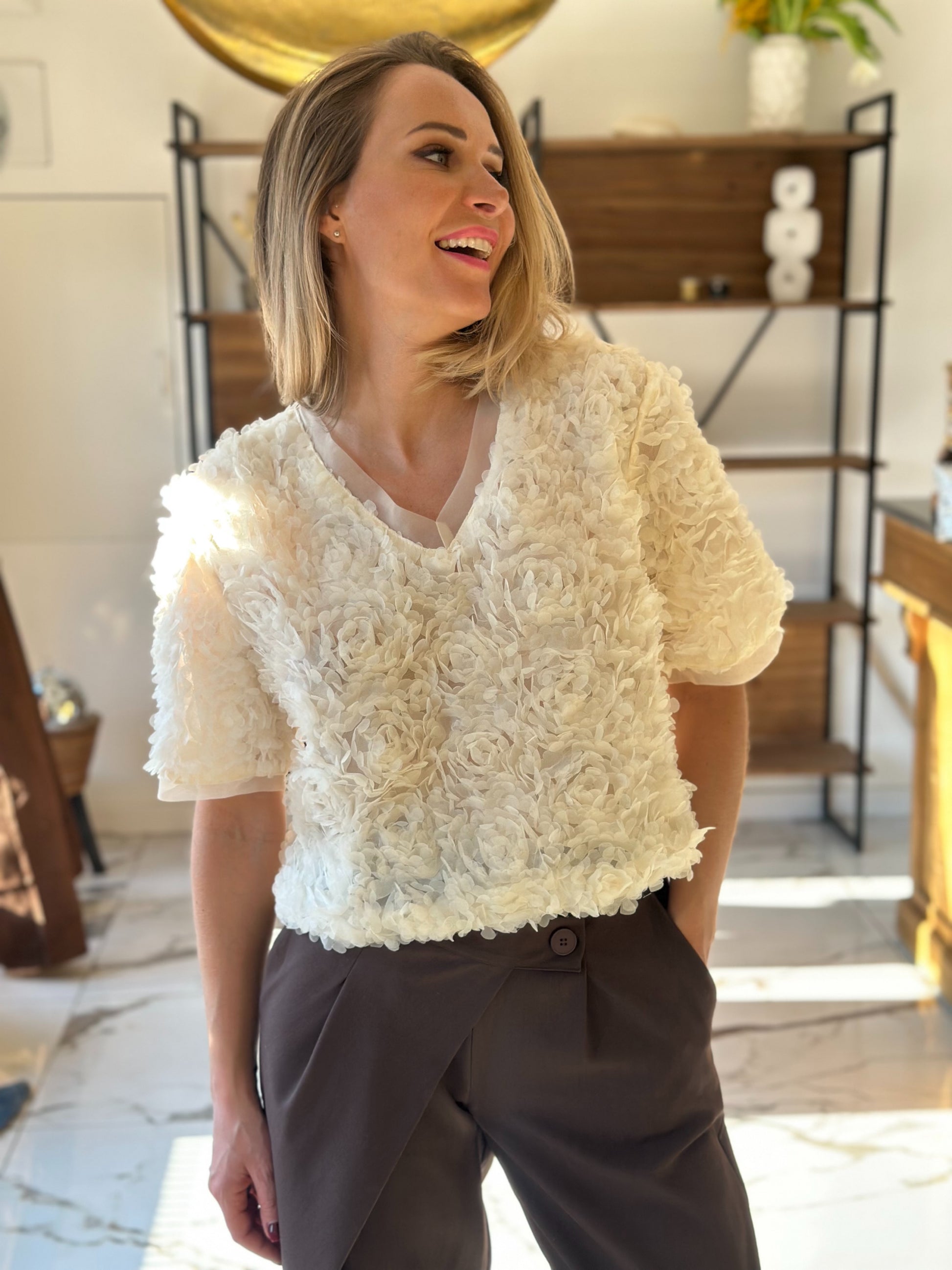 Découvrez le Haut Lana, un haut beige habillé conçu pour les mariages. Sa coupe élégante et sa teinte neutre permettent une intégration harmonieuse dans diverses tenues formelles. Fabriqué avec des matériaux de qualité, il offre confort et style, idéal pour les célébrations nuptiales.